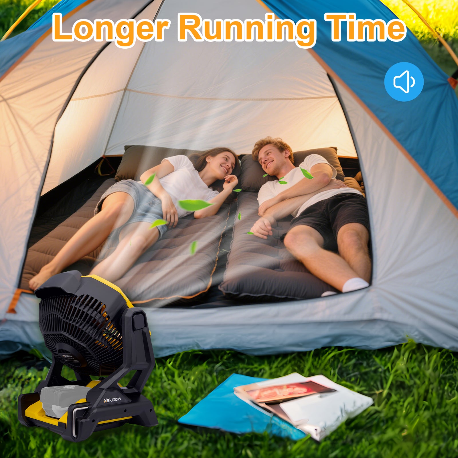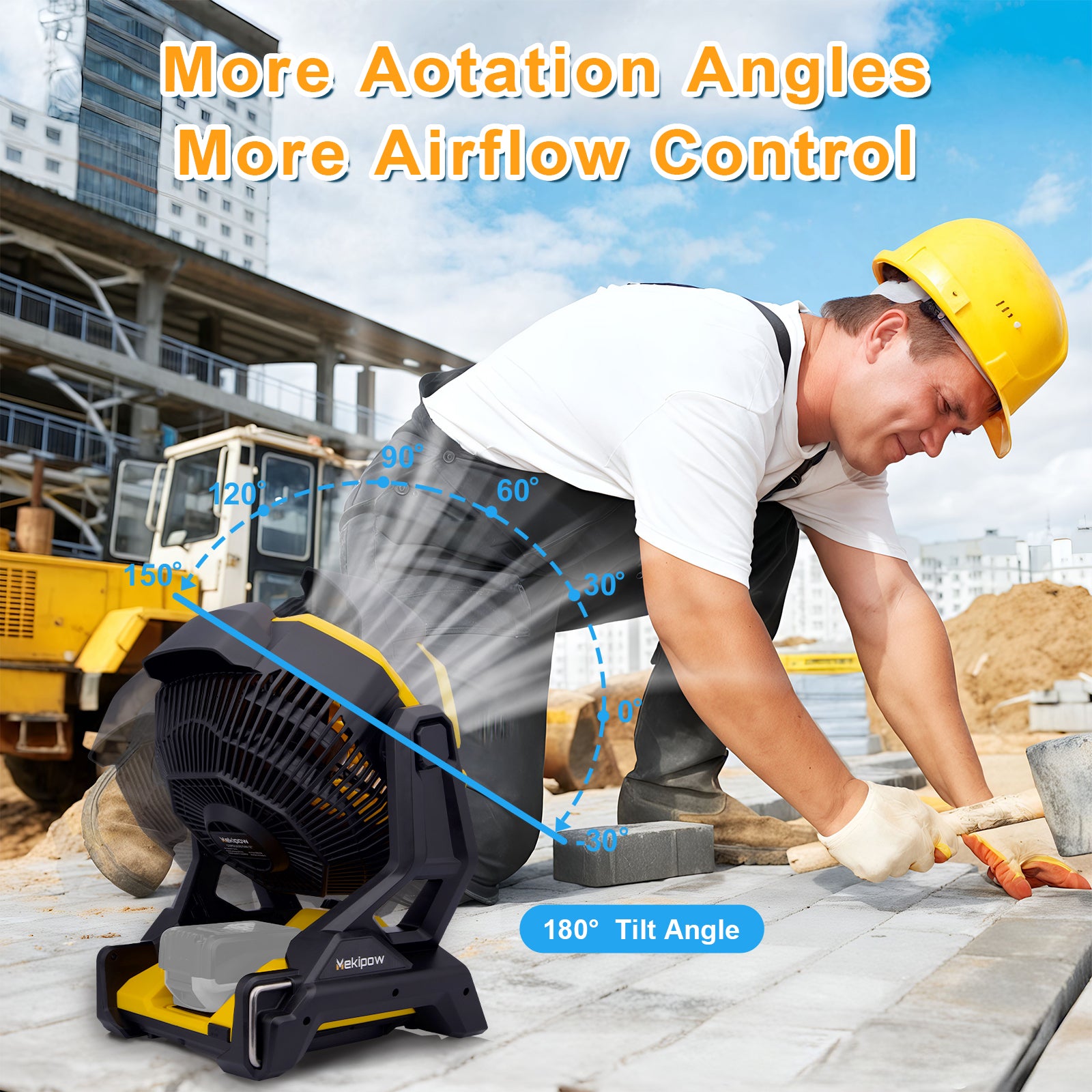 MekiPow Cordless Jobsite Fan, Compatible with Dewalt 20V Battery for Outdoor, Camping, Workshops, Office, RV (Battery Not Included)
